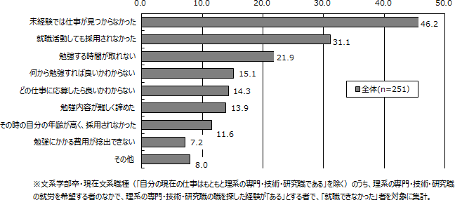 理系職種への職探しを行い就職に至った割合は24.9%であり、75.1%は就職に至らなかった。
