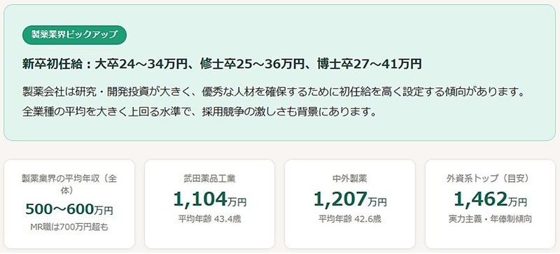 - ワールドインテックRD「製薬会社の職種別平均年収」