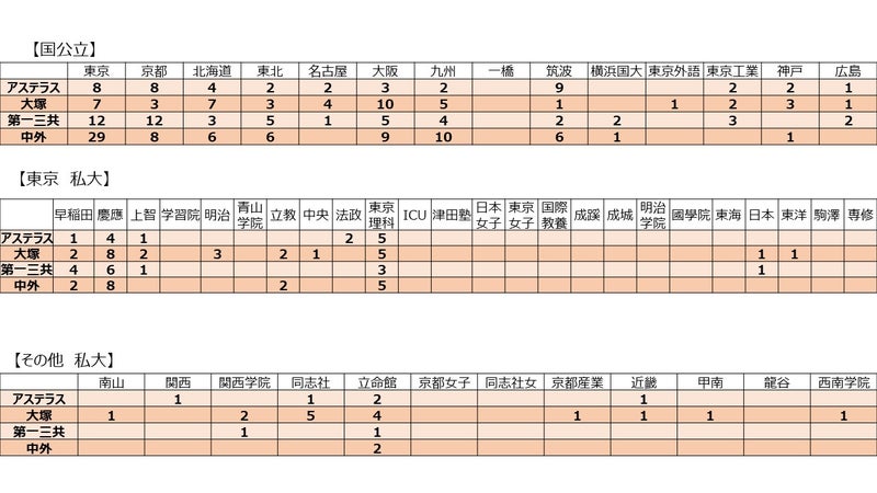 製薬業界自体が社員数を絞っている傾向ですが、有名大学ではある程度採用している様子がわかります。